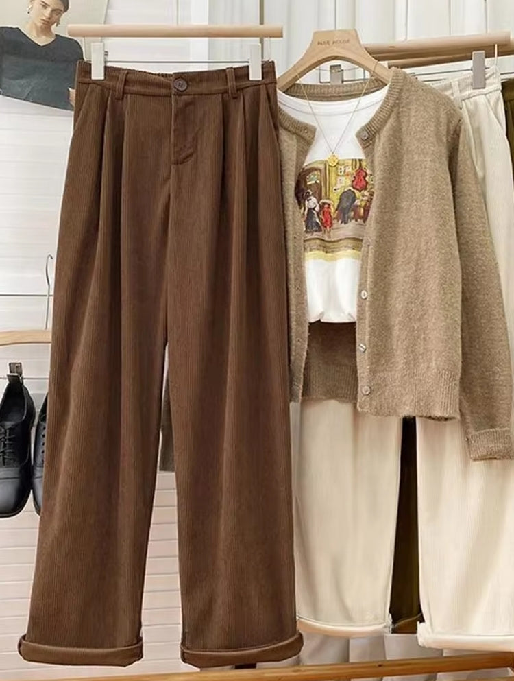 Quandu si tratta di moda di vaghjimu è di l'inguernu, avè un paru di pantaloni di donna di corduroy vintage in u vostru armariu hè un must. Ùn sò solu eleganti è versatili, ma ancu furnisce a cumminazione perfetta di cunfortu è calore. Sia chì andate in l'uffiziu o fora per un brunch casuale di u weekend, questi pantaloni a gamba larga di caffè a vita alta diventeranu di sicuru un basi in u vostru armariu.